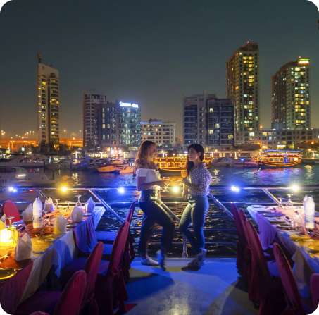 Yes. Both the Dhow Cruise and the House Boat can be reserved privately, subject to date and capacity. For safety, service access, and sightlines, Everblue sets the floor plan and table arrangement. Tell us whether the brief is a formal seated dinner, cocktail-style service, or a lounge-forward evening, and we’ll engineer the run-of-show entertainment order, announcement moments, and pacing to fit. Share your headcount and preferred style and we’ll confirm availability and configuration.